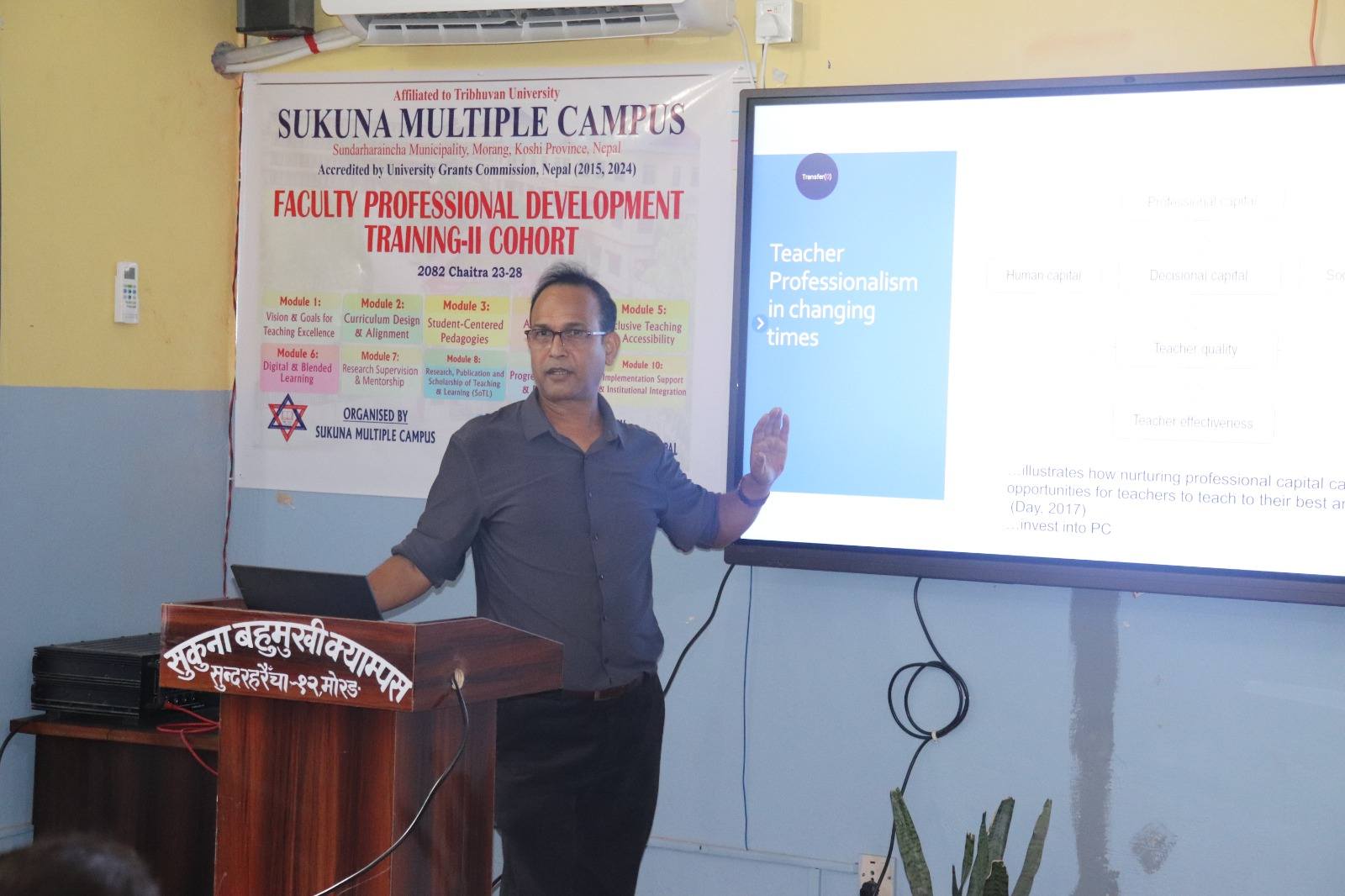 Highlights from the Faculty Professional Development Training-2nd Cohort The inaugural session was honored by the presence of Prof. Dr. Devraj Adhikari, Chairman of the University Grants Commission (UGC), who served as the Chief Guest. Organized by Sukuna Multiple Campus with the support of UGC Nepal, this intensive 48-hour training for the faculties of community campus started on Chaitra 23 and end on 28. A total of 30 faculty members representing 17 community campuses participated in the training.